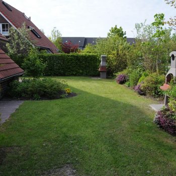 Das Grundstück ist schön eingewachsen und nahezu vollständig von Heckenbewuchs umschlossen, sodass Kleinkinder mit minimalem Aufsichtsaufwand im Garten spielen können.